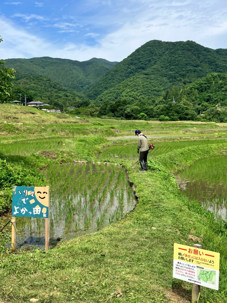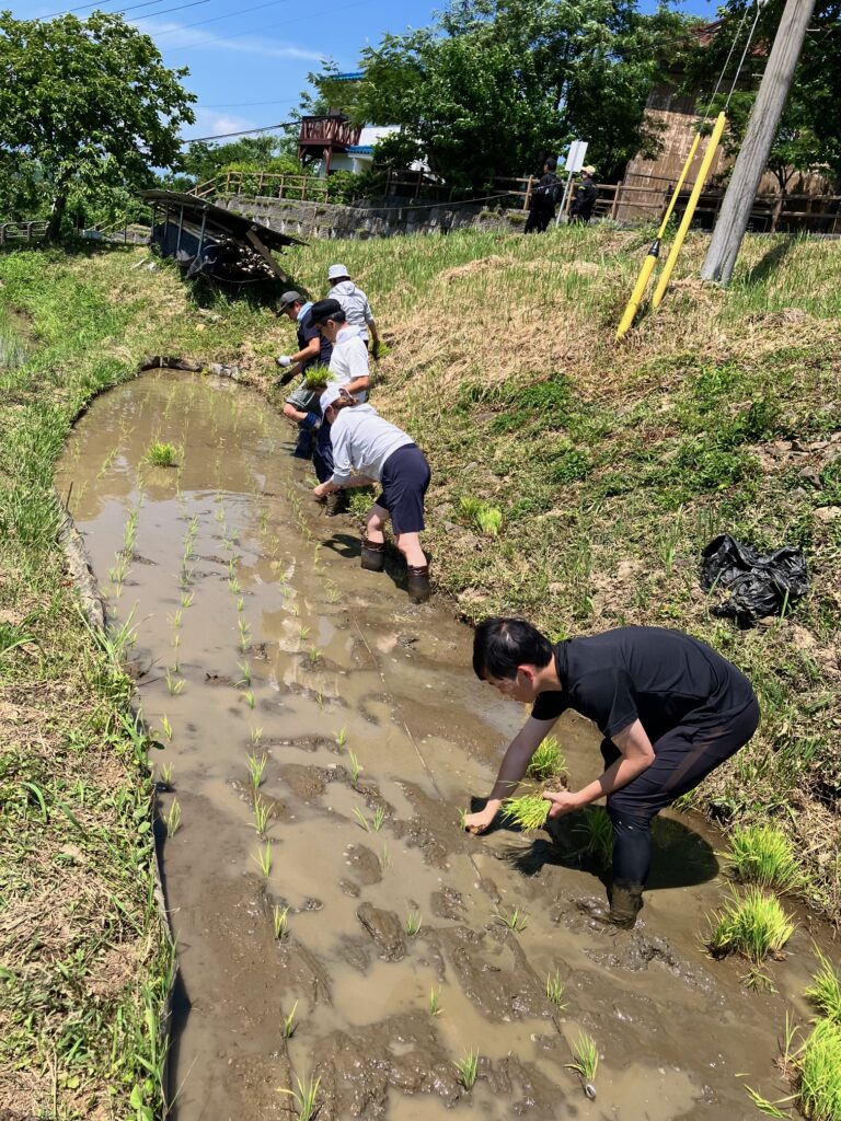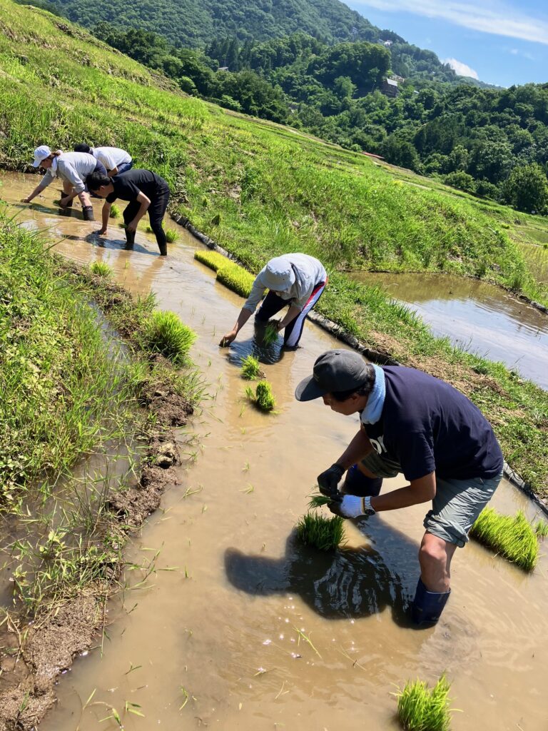 稲が順調に育っていくための「水の管理」「雑草抜き」と、前回手をつけていなかった田んぼの「田植え」を有志で実施しました。