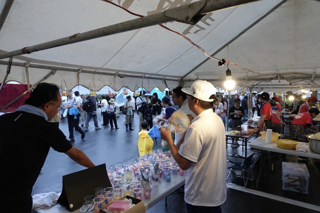 それでも、スタッフは雨に濡れながらてきぱきと動き、一つひとつのランタンに火を灯していきました。
