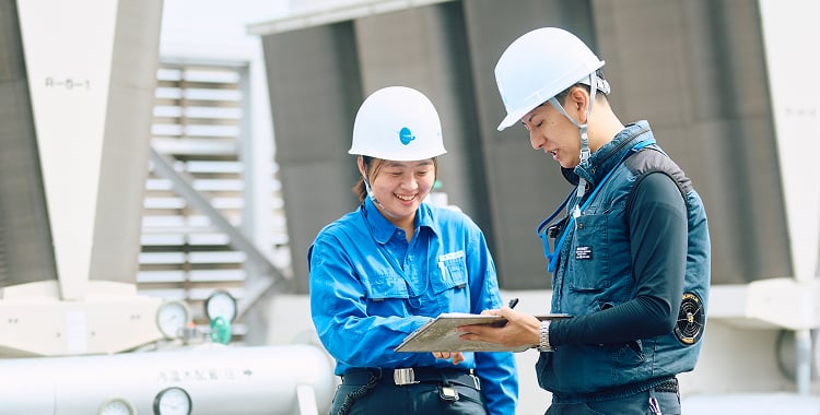 また、実際のビル設備を備えた研修施設を利用した研修も実施。設備の見学、実物を目の前に機能や仕組み・構造の概要を学びます。
