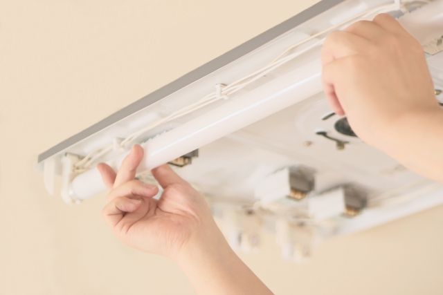 施設でよく使われる「直管形蛍光ランプ」の更新方法は、主に3種類あります。