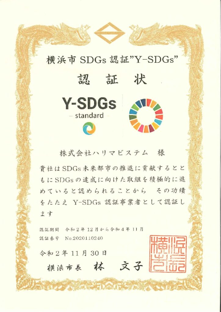 「横浜市SDGs 認証制度“Y-SDGs”」 標 準 Standard に認証されました。